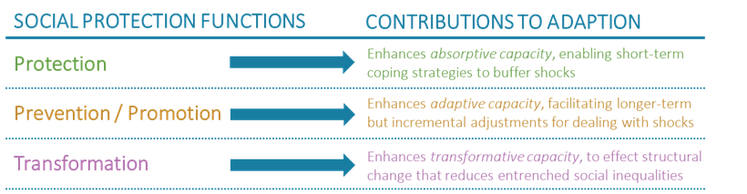 Figure 1: Social protection functions and their contribution to climate adaption. Derived from Béné et al. 2012