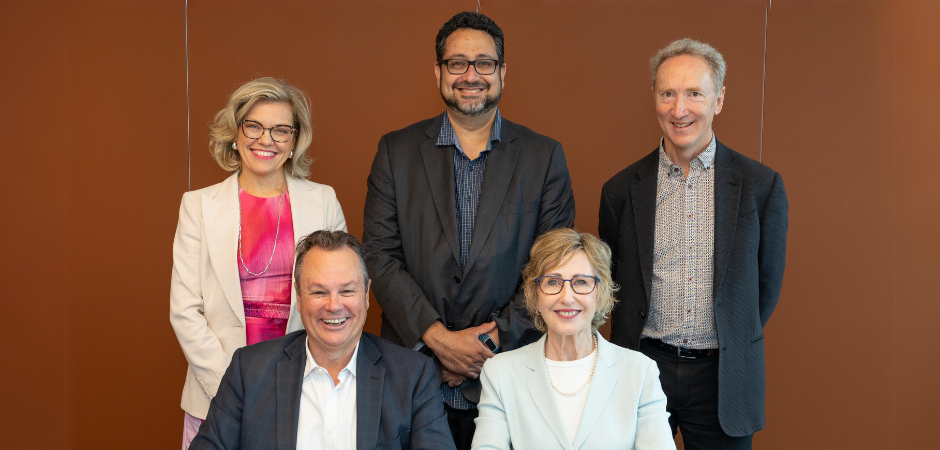 Image: In the front row, Robert Kennedy, CEO of Synergy Group Australia; Lucille Halloran, Synergy Group’s Chair. Standing behind, Dr Nina Terrey, ThinkPlace Partner; Darren Menachemson, ThinkPlace Partner; John Body, ThinkPlace Founding Partner.